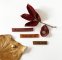 Les textes sont gravées dans des polices différentes et des couleurs de cuirs automnales.