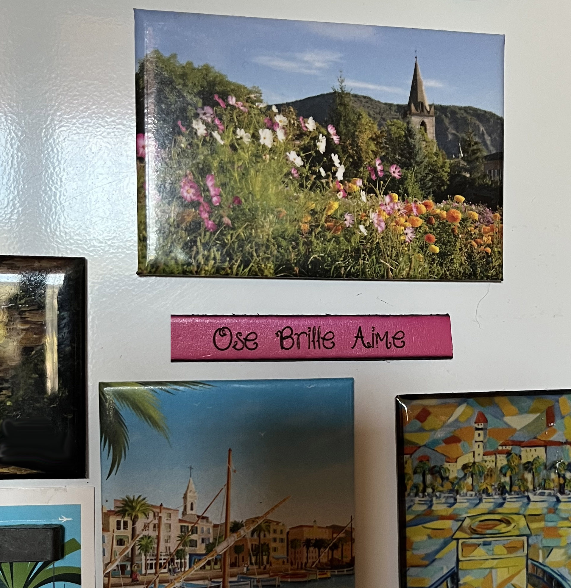 Un magnet avec vos mots gravés au format étiquette, en largeur 10 mm.