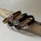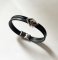 Bracelet mixte duo de cuirs décoré d'un passant argenté aux 2 losanges entrelacés, symbole d'union, Possibilité de graver des mots doux sur le bracelet ou à l'intérieur comme un message secret.